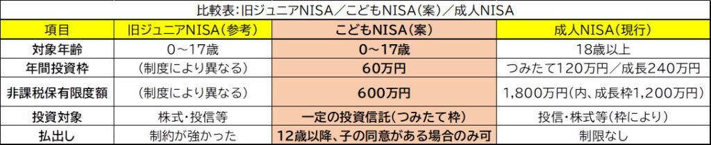 今後は、多額資金を一度に移したい層は、こどもNISA(年60万円)とは別軸で検討が必要になる。